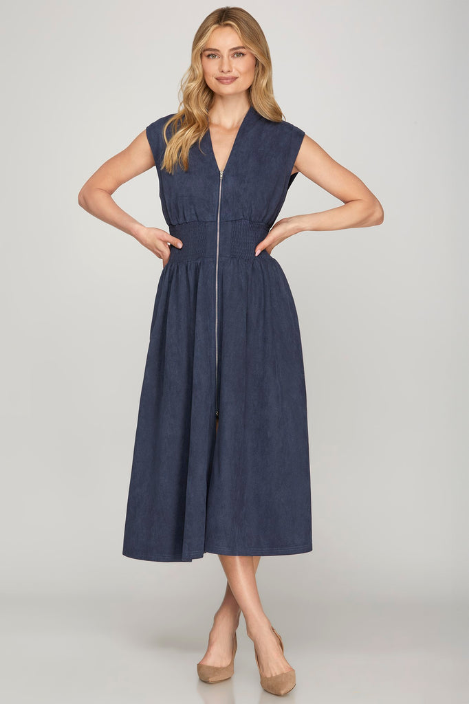 The Clarisa Dress is your new go-to for effortless style and comfort. Featuring a relaxed drop shoulder and a smocked waist, it offers a flattering fit that moves with you. The fun front zip adds a cool twist, while handy pockets keep your essentials close. With its eye-catching print, this dress brings playful charm to any day out.